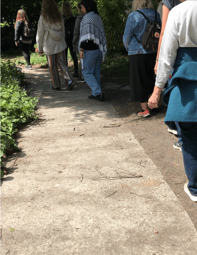 Slow walking with Felicia Konrad. Inspired the Butoh movement in Japan, slow walking is an in-route to deeper listening and awareness. One might feel self-conscious trying this all alone. This is one of those situations where being in a group allows us to try another way of being, without worrying about how it looks to others. The dramatic reduction in pace lets you take in information from all around you in a more profound way.