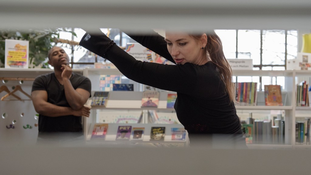 We began with a short acrostic writing exercise, then moved into movement fairly quickly. Garaget is like a library in a living room and soon enough there were people dancing and saying lines of poetry in every corner. We incorporated book titles and feelings. We let words take us to movement and movement take us to words. We heard poetry in French, English, Swedish, Portuguese, Finnish, Russian and Japanese. I have lots of lovely memories, not least of all seeing trust develop and encouragement in this experimental area.